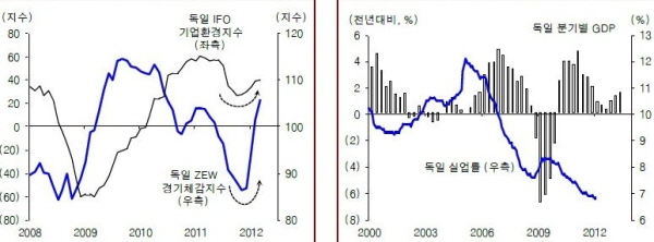 실제 독일 경기 전망을 반영하는 IFO 기업환경지수와 ZEW 경기체감지수는 반등세를 유지하고 있으며 이러한 영향으로 경기 회복 기대감이 살아나 독일 실업률도 20년래 최저치를 기록하고 있다.