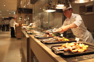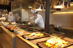 제주신라호텔의 뷔페 레스토랑은 이미 제주에서 최고의 ‘올데이 다이닝’을 즐길 수 있는 뷔페 레스토랑으로 손꼽히는 곳입니다. 이곳에서 식사를 하다보면 제주신라호텔 투숙객 뿐 아니라 인근 호텔 고객까지, 또 가족단위에서 노부부까지 다양한 계층이 오붓한 식사를 즐기기 위해 이곳을 찾더군요. 조‧석식을 찾는 수요층이 늘자 제주신라호텔은 기존 좌석으로는 이를 감당하기 어려워져 입구 쪽을 확장, 약 80석의 좌석을 추가로 만들기도 했습니다.