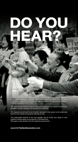 이번 광고에서는 위안부 할머니들의 수요집회 모습을 사진으로 담아 "이들의 외침이 들리시나요? 이들은 제2차 세계대전당시 '일본군 위안부'로 살아야 했던 피해자들 입니다"라고 소개했다.