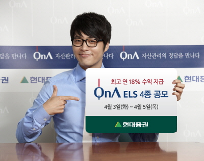 [프라임경제] 현대증권(003450)은 3일(화)~5일(목) 사흘간, 원금비보장형 ELS 3종, 원금보장형 ELS 1종 등 총 4종의 상품을 200억원 규모로 공모한다고 밝혔다.