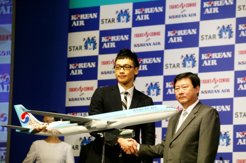 [프라임경제]8일 하얏트리젠시 인천 호텔에서 대한항공이 가수 ‘비’의 레인스 커밍(Rain’s Coming) 월드투어를 후원하는 행사를 가졌다.