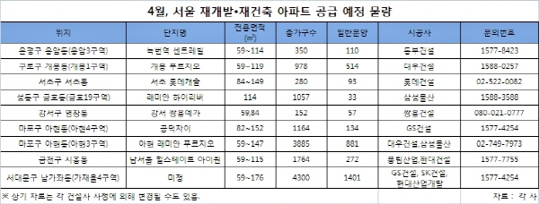 [프라임경제] 4월 서울 분양시장에 재개발·재건축 분양단지를 중심으로 대규모 물량이 쏟아진다.