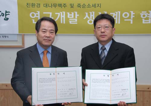 담양군에 따르면 ‘죽순을 이용한 기능성식품 상품화 사업’을 통해 개발한 대나무 맥주와 죽순 소시지의 본격적인 생산에 앞서 담주 영농조합법인(대표 김형락)과 생산과 마케팅 등에 대한 생산 계약 협약서를 4일 체결했다.