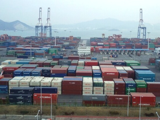 | 선적을 대기중인 전남 광양항 컨테이너 항만. | ||