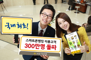 [프라임경제] KB국민은행(105560)의 스마트폰 뱅킹서비스인 ‘KB스타뱅킹’ 이용 고객수가 국내 최초로 300만명을 돌파했다.