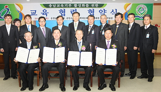 | 미래엔과 충남 교육청은 지난 5일 교육기부 활성화 위해 교육기부 협약식을 체결했다. | ||