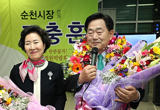 [프라임경제] 전남 순천시장 보궐선거에서 무소속 조충훈 후보가 민주당 허정인 후보를 따돌리고 당선됐다. 조충훈 후보는 12일 새벽 1시 현재 개표율 85%가 진행된 가운데 36.6%로 27.7%에 그친 허정인 후보를 여유있게 누르고 시장직을 재탈환했다.