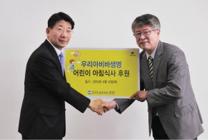 [프라임경제] 우리아비바생명은 12일 IDSC(International Day of the Street Children) 국제 거리 어린이 후원의 날을 맞이해 영등포구 신길동의 도림초등학교를 방문, 저소득층 아동들의 아침식사를 한 달간 제공하는 후원금을 전달했다고 밝혔다.