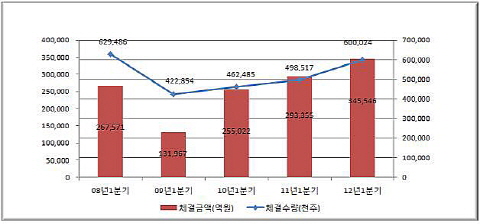 한국예탁결제원에 따르면, 2012년 1분기 한국예탁결제원을 통한 주식대차거래 주식수는 6억주로 전년 동기 4억9900만주 대비 20.4% 증가했다.