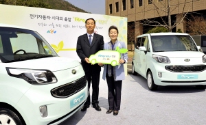 | 환경부와 ‘레이EV’ 전달식을 진행한 기아차는 연말까지 공공기관 등 보급 대상 기관을 상대로 2500대의 ‘레이EV’ 판매를 목표로 삼고 있다. | ||