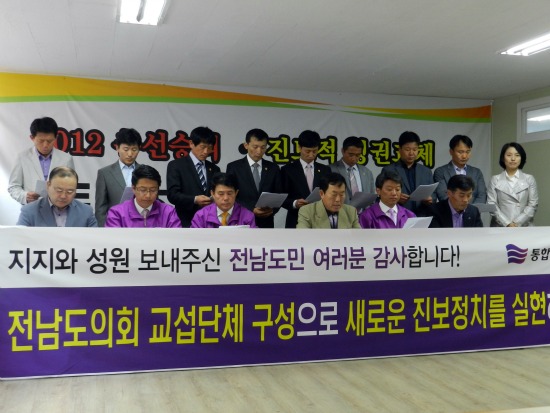 통합진보당 측은 기존 3명(이정민 정우태 안주용)에, 이번 4.11 여수 보궐선거에서 당선된 2명(천중근 김민곤)을 합해 5명이 됐으며, 장흥 제1선거구 무소속 최경석 의원과 함께 6명을 꾸려 교섭단체 모임을 만들기로 했다.