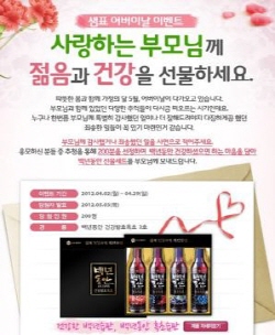 [프라임경제] 샘표식품(007540)이 가정의 달인 5월을 앞두고 건강발효흑초 ‘백년동안’을 선물하는 홈페이지 이벤트를 전개한다고 19일 밝혔다.