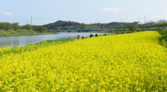 [프라임경제] 모처럼 화창한 날씨를 보인 22일 전남 순천 동천에 유채꽃이 피기 시작해 산책나온 시민들을 반기고 있다. 순천 도심을 흐르는 동천은 강폭이 100m가 넘는 '강(江)급' 하천으로 1급수질을 유지하고 있으며 순천만으로 흘러 내려간다.