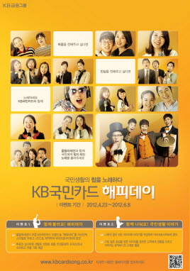 한편, KB국민카드는 노래 발표에 맞춰 브랜드송 부르기 이벤트인 ‘함께 불러요 해피데이’와 ‘함께 나눠요 국민생활이야기’ 이벤트를 4월23일부터 6월8일까지 브랜드송 이벤트 마이크로 사이트를 통해 진행한다.