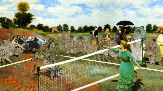 18세기에 탄생한 김홍도의 ‘무동’에 등장하는 춤꾼과 19세기 존 라버리의 ‘테니스 파티’에 등장하는 우아한 드레스 차림의 귀부인이 테니스 경기를 벌인다.