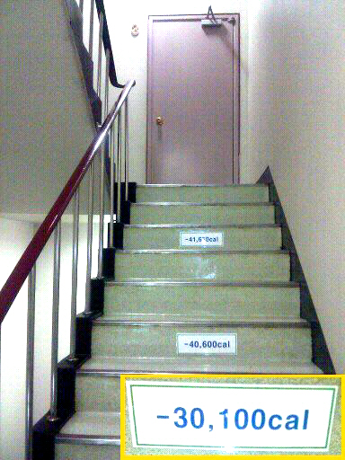 이런 ‘칼로리 바’는 세 계단 건너 하나씩 부착돼 있었는데요, 효성 측에 따르면 지하 2층부터 16층까지 완주할 경우 약 133Kcal가 소모된다고 합니다.