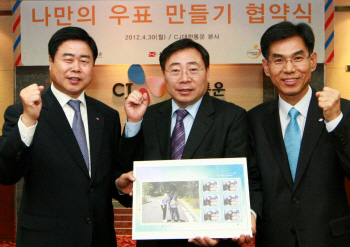 CJ대한통운은 30일 서울 중구 서소문동 본사 6층 대회의실에서 이승재 서울지방우정청 청장과 이현우 대표, 곽대석 CJ나눔재단 국장이 참석한 가운데 ‘나만의 우표 만들기 협약식’ 행사를 가졌다고 밝혔다.