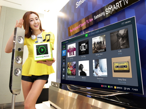 삼성전자(005930)는 음악을 알아듣고 검색하는 ‘네이버 뮤직’ 스마트TV 앱을 출시해, 삼성 스마트TV 고객들이 거실에서 TV를 보다가 모르는 음악이 나와도 간편하게 음악을 찾아 들을 수 있게 했다.