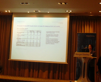 치아오 수석은 “중국의 GDP 성장률을 9.0%로 보고 있다”고 말했다. 이는 업계(월가)에서 가장 높은 수준이다. 월가의 중국 관련 전망을 종합해 보면 8.2%가 가장 낮은 편이며 8.6% 정도가 컨센서스라고 치아오 수석은 소개했다. 이와 관련, 중국 경제가 GDP 성장에 있어 리밸런스 문제를 슬기롭게 처리하고 있다는 견해를 피력했다. 어느 한쪽에 치우친 경제 성장으로 왜곡되지 않게 보정해 가면서 성장하고 있기 때문에 고도의 성장을 당분간 이어갈 수 있다는 것이다.