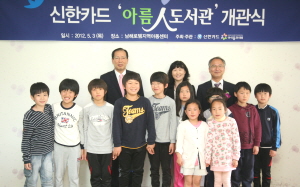 | 신한카드는 3일 로뎀지역아동센터에서 ‘아름人 도서관’ 개관식을 갖고 1000여권의 아동ㆍ청소년 권장도서를 지원했다고 밝혔다. | ||