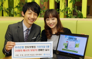 [프라임경제] 우리은행(053000)이 가정의 달 5월을 맞이해, 인터넷뱅킹을 통해 '사랑의 메시지 보내기' 캠페인을 전개하고 있다.