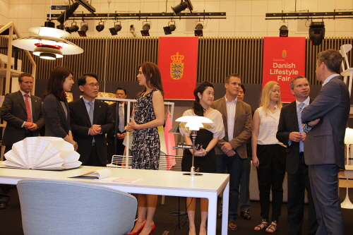 신세계백화점 본점이 15일부터 오는 20일 까지 '데니쉬 라이프스타일 페어'를 열고 공식 방한중인 프레데릭 크리스티안 덴마크 왕세자 내외를 초청했다. 이 행사에서 프레데릭 크리스티안 덴마크 왕세자 내외와 피터 뤼스홀트 한센 주한 덴마크 대사가 신세계백화점 박건현 대표와 함께 매장을 둘러보고 있다.