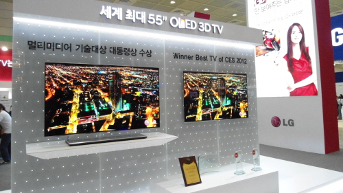 다만, 삼성전자가 ‘보안’상의 문제로, 프리미엄 OLED TV를 전시하지 않았다. 때문인지 전용 부스에 2대의 55인치 3D OLED TV를 설치한 LG전자는 관람객들의 시선이 집중되는 모양새를 보이기도 했다.