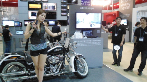 | KT는 WIS에 할리데이비슨 오토바이를 전시하고 오토바이 보안관제 솔루션을 소개했다. | ||