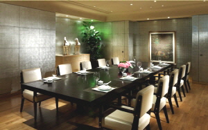 별실에는 전담 직원이 있어 문을 나서는 마지막까지 서비스합니다. 아울러 별실은 비즈니스 미팅이 가능하도록 40인까지 수용 가능한 개폐식 구분을 뒀을 뿐 아니라 프리젠테이션을 위한 설비도 갖췄죠.