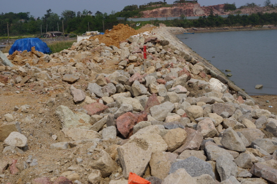 또 공사장 인근의 야산에서 발생한 붉은색 골재가 방조제 공사골재로 투입되면서, 엉터리 공사란 지적을 사고 있다.