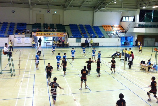 [프라임경제] ‘제1회 5.18민주화운동기념 배구대회’가 20일 전남대학교 체육관에서 16개팀 300여명의 선수들이 참가한 가운데 개최됐다. 사진은 첫번째 경기장면.