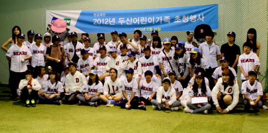 두산베어스 선수단도 행사에 동참해 두산어린이가족에게 사인볼을 선물하고 기념사진을 촬영했다.