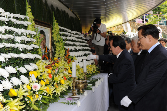 [프라임경제] 강운태 광주시장이 22일 오전10시 故 노무현 대통령 서거 3주기 추도식에 참석해 장병완 국회의원, 김재균 국회의원, 박준영 전라남도 지사, 윤봉근 광주시의회 의장 등과 함께 헌화 분향하고 있다.