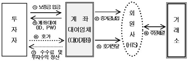 | 불법 선물계좌 대여 기본구조, 거래소 제공. | ||