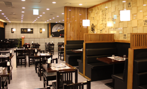 | 밝은 조명과 화사한 인테리어의 멘무샤 매장. 독특한 장식과 무늬로 꾸며져 일본 특유의 분위기를 풍긴다. | ||