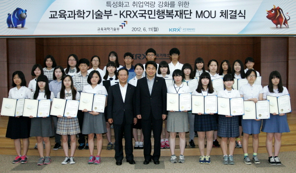 [프라임경제] 한국거래소 국민행복재단(이사장 김봉수)와 교육과학기술부(장관 이주호)는 11일 한국거래소 서울사옥에서 특성화 고등학생 취업역량 강화를 위한 업무협약(MOU)을 체결했다.