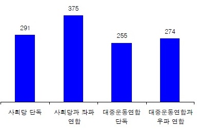 | 5일 실시된 프랑스 여론조사 결과 사회당의 과반수당 우세라는 예상치가 나왔다. 의석수는 최대 예상치로 LIG투자증권·Ipsos 자료 제공. | ||