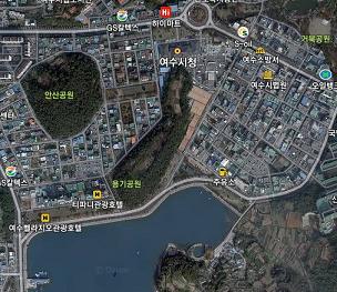 | 위성사진으로 본 여수시청과 용기공원. | ||