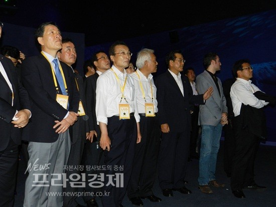 [프라임경제] 13일 오후 여수박람회장 미국관을 찾은 이해찬 민주당 대표와 의원들이 미국관에서 영상을 관람하고 있다. 바다 오염으로 인해 산호초가 이미 30%가 죽었고 향후 우리세대가 끝나기 전에 30%가 더 죽을 것이라는 경고영상을 보면서 심각하게 시청하고 있다.