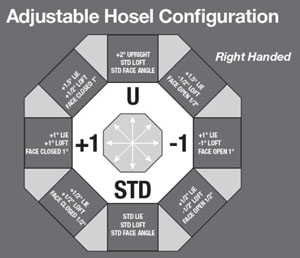 로프트는 +/-1도, 라이는 +2도, 샤프트는 기존 45인치에서 0.5인치 늘려 45.5인치로 늘릴 수 있는 기능이 있으며, 추가적으로 헤드 아래 부분에 무게추를 떼어 낼 수 있게 디자인 돼 헤드 무게를 줄여줄 수도 있다.