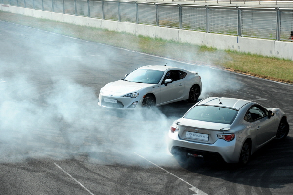 이날 시승행사의 대미는 일본 현지에서 활동하고 있는 드리프트 및 레이싱 선수들과 기자들이 함께하는 드리프트 체험이다. 특히 86은 코너링 시에 후륜구동의 장점을 살린 드리프트로 유명하다.