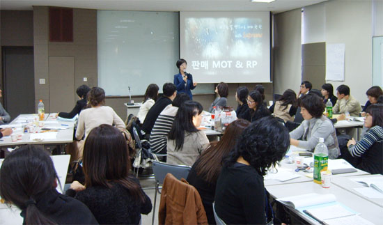 | 네슬레 -판매서비스과정을 이은정 강사가 교육생을 대상으로 강의를 하고 있다. | ||