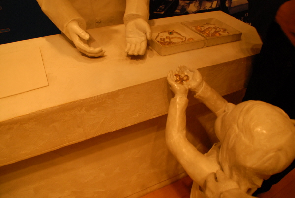 | 금모으기 운동 당시의 모습을 입체물로 만들어 전시하고 있다. | ||