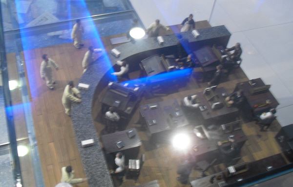 | 우리은행 은행사박물관에 전시된 과거 은행 창구의 운영 모습. 수기식(사람이 직접 작성)으로 운영되던 은행 장부책이 책상마다 놓여있는 점을 알 수 있다. | ||