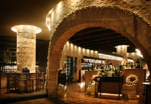 | 지하 와인셀러를 모티브로 꾸민 매드포갈릭 매장 내부. 은은한 조명이 어우러져 고급스러운 느낌을 자아내고 있다. | ||