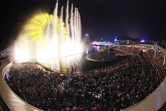 | 여수엑스포장에서 매일 밤 8시50분에 공연되는 '빅오(Big-O)쇼'의 화려한 장면. | ||