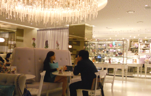 | 화이트&파스텔톤의 인테리어에 화려한 샹들리에와 폭신한 암체어 등 팔러는 영국 상류층으로부터 발전한 '애프터눈 티' 문화를 공간에 담아내고자 했다. | ||