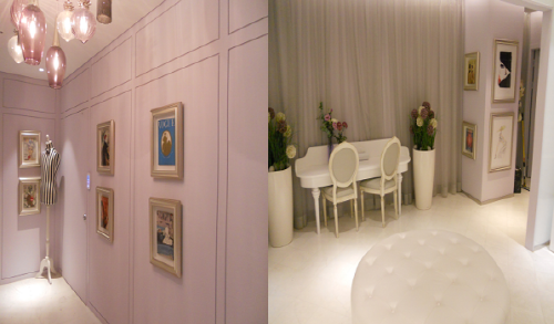 회전문을 통과해 팔러에 발을 내딛는 순간, 조용하면서도 우아한 분위기가 전달됐다. 화이트와 파스텔톤 대리석 인테리어로 화사함을 강조한 가운데, 연보라색 커튼 등으로 포인트를 줘 신비감을 조성하고 있었다.