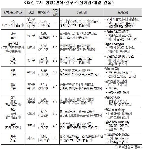 앞으로 건설되는 10곳의 혁신도시는 공공기관 이전과 유관기업 유치 등 산·학·연 네트워크 를 통해 지역별 전략산업과 연계한 신 성장 거점으로 육성된다.
