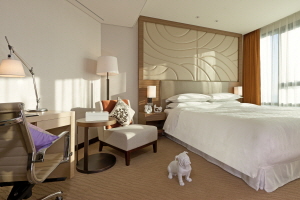 38평방미터의 디럭스 룸(Deluxe Room)에 제공된 쉐라톤 브랜드만의 특화된 베드는 신체 맞춤형 매트리스와 300수 린넨의 고급스러운 시트, 거위털 침구를 사용해 여행객이 여행으로 인한 피로를 풀고 숙면을 취하도록 집과 같은 편안함을 제공합니다.